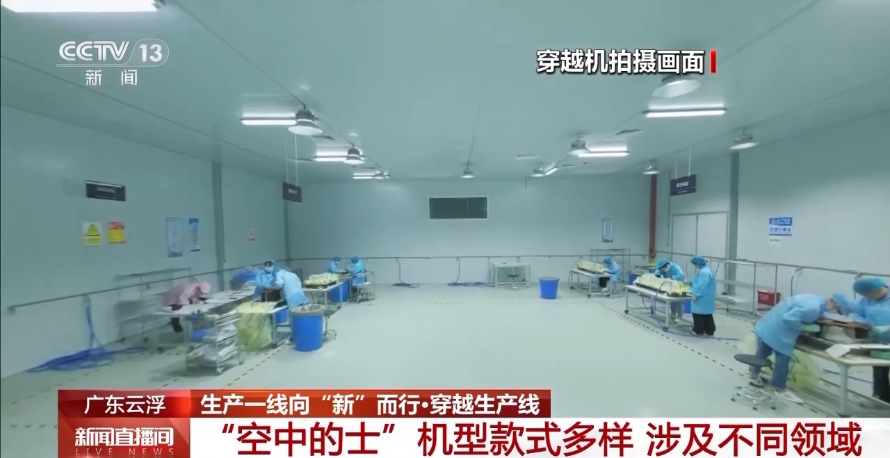 跟随着穿越机继续向前,在总装生产车间,工作人员正在对我们刚刚看到的包括碳纤维在内的所有零部件进行装机。