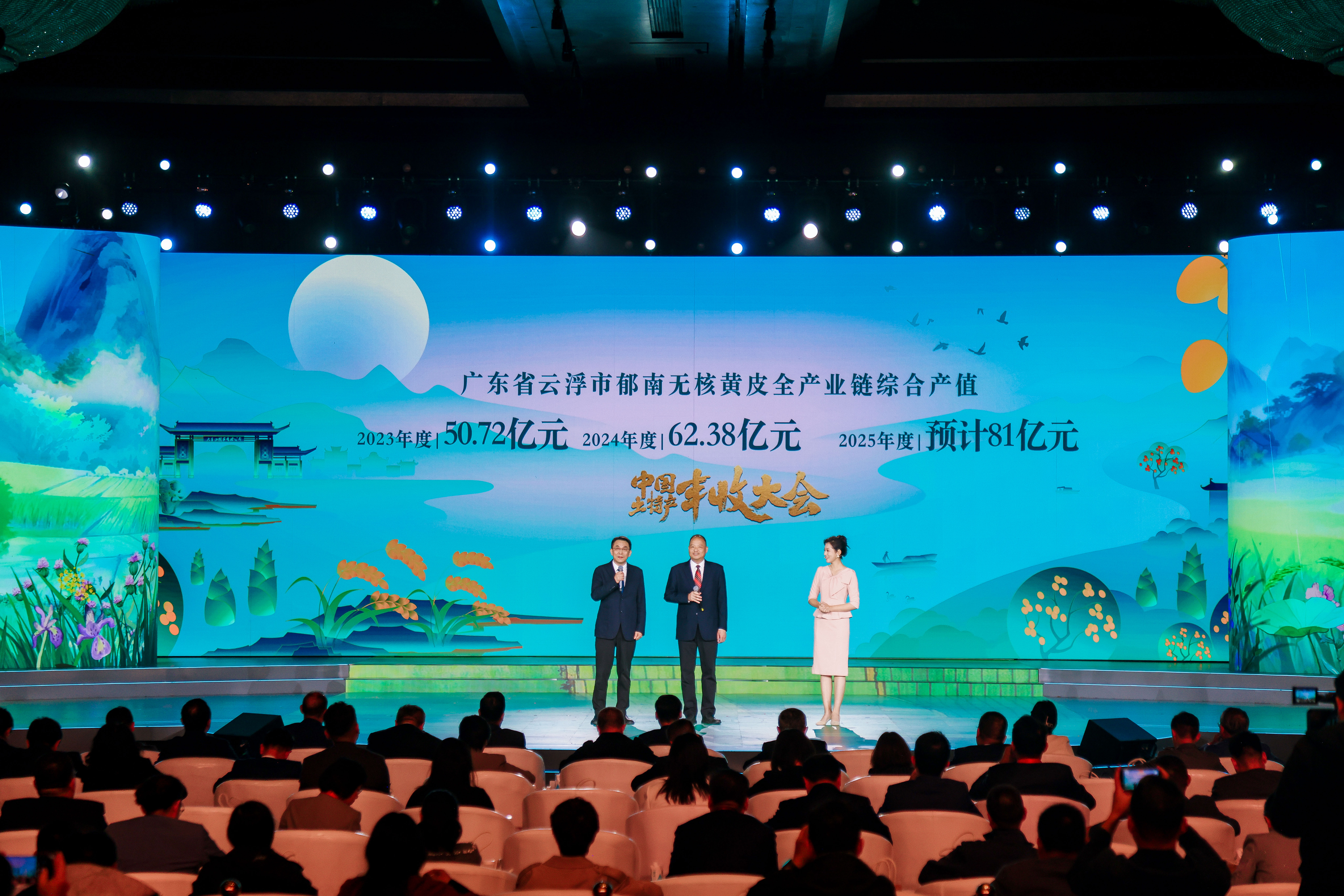 据悉,本次亮相的“破圈密码”在于通过构建“媒体+产业全链条”的创新发展模式。《中国土特产丰收大会》为郁南无核黄皮搭建了从田间到全国的“黄金通道”,数据显示,合作两年来,郁南黄皮全产业链产值实现两级跃升——从2023年的50.72亿元增至2024年的62.38亿元,2025年更将突破81亿元大关。果农户均增收达1.1万元,真正实现了“小果子撬动大产业”的乡村振兴图景。