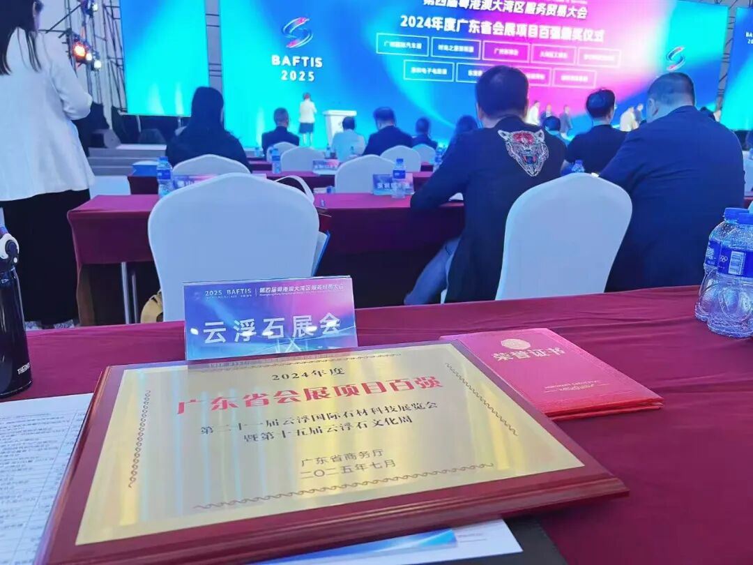 活动还举行了“广东省会展项目百强”颁牌仪式,对过去一年表现卓越的会展项目进行表彰。其中,我市第二十一届云浮国际石材科技博览会暨第十五届云浮石文化周,荣获“2024年度广东省会展项目百强”称号,粤东西北城市仅汕头、阳江、云浮等三个获此殊荣。