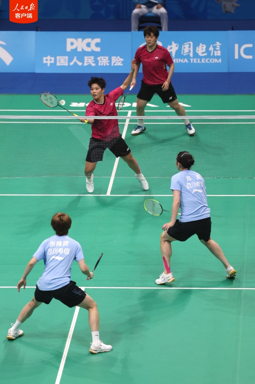 11月20日,第十五届全国运动会羽毛球女双决赛在深圳市体育中心体育馆结束,福建组合黄东萍/谭宁直落两局,以2∶0战胜四川选手郑雨/张殊贤,获得金牌,两局比分分别为25∶23、21∶16。