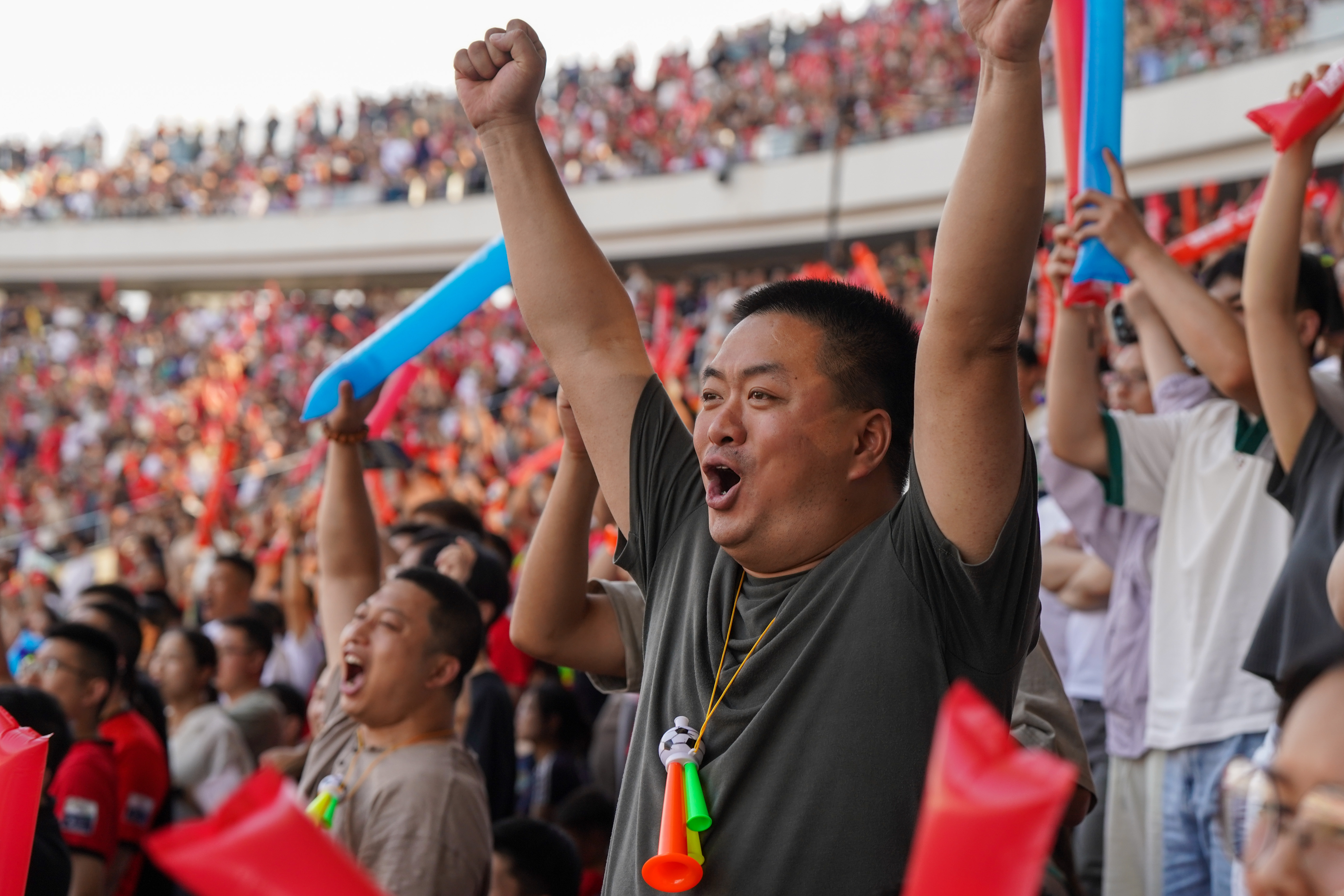 江苏省城市足球联赛“引爆”球迷热情,新华社图片