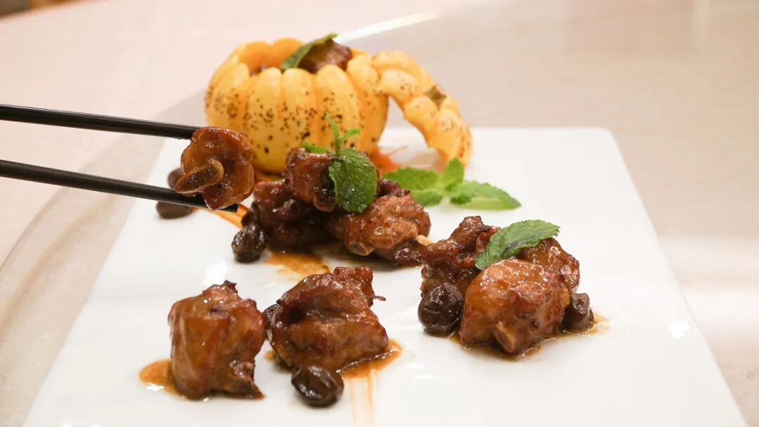 选用本地无核黄皮干与放养猪肋排焖煮入味